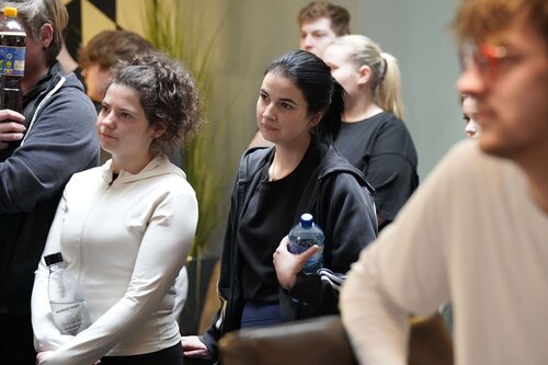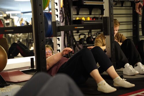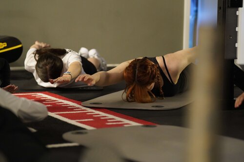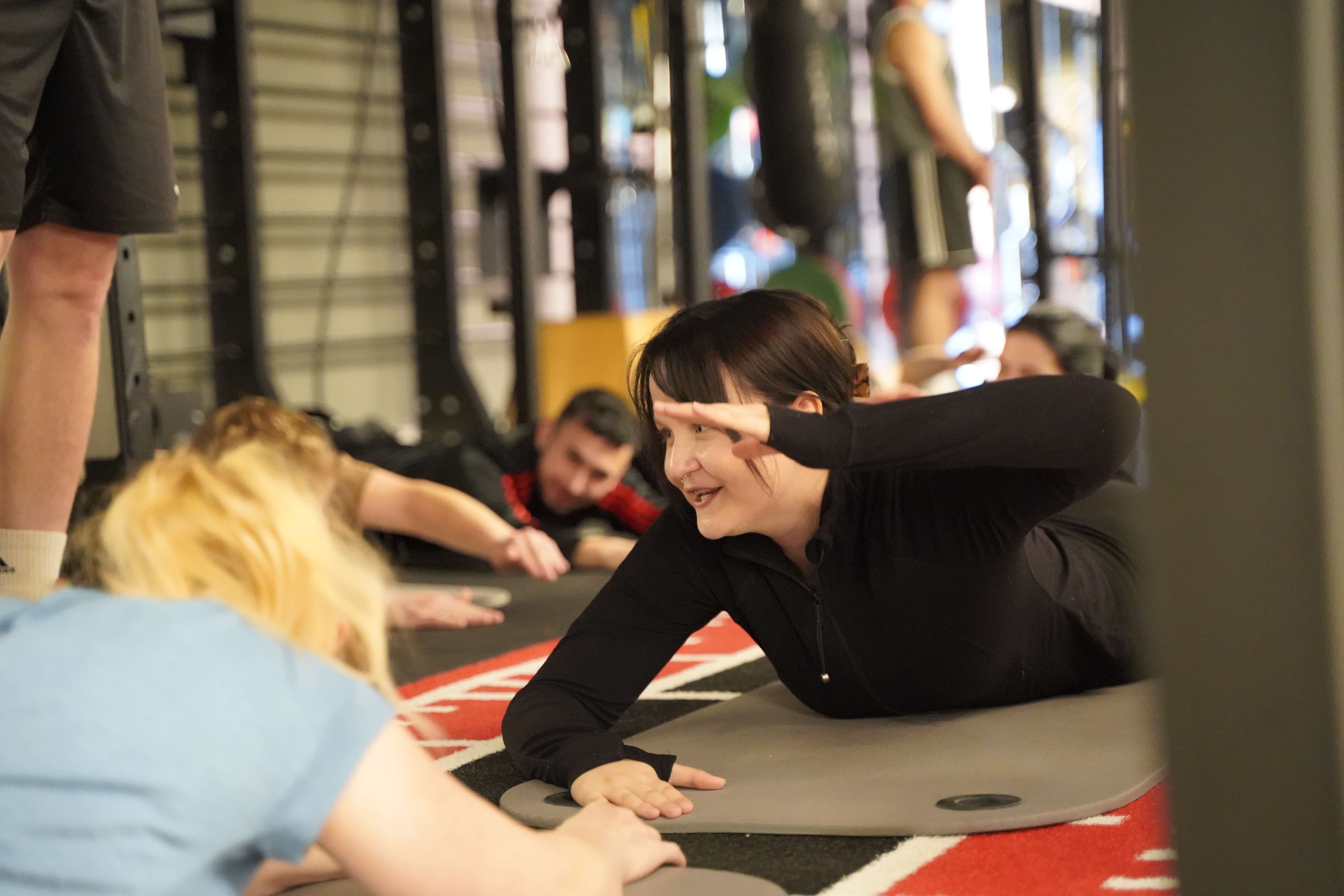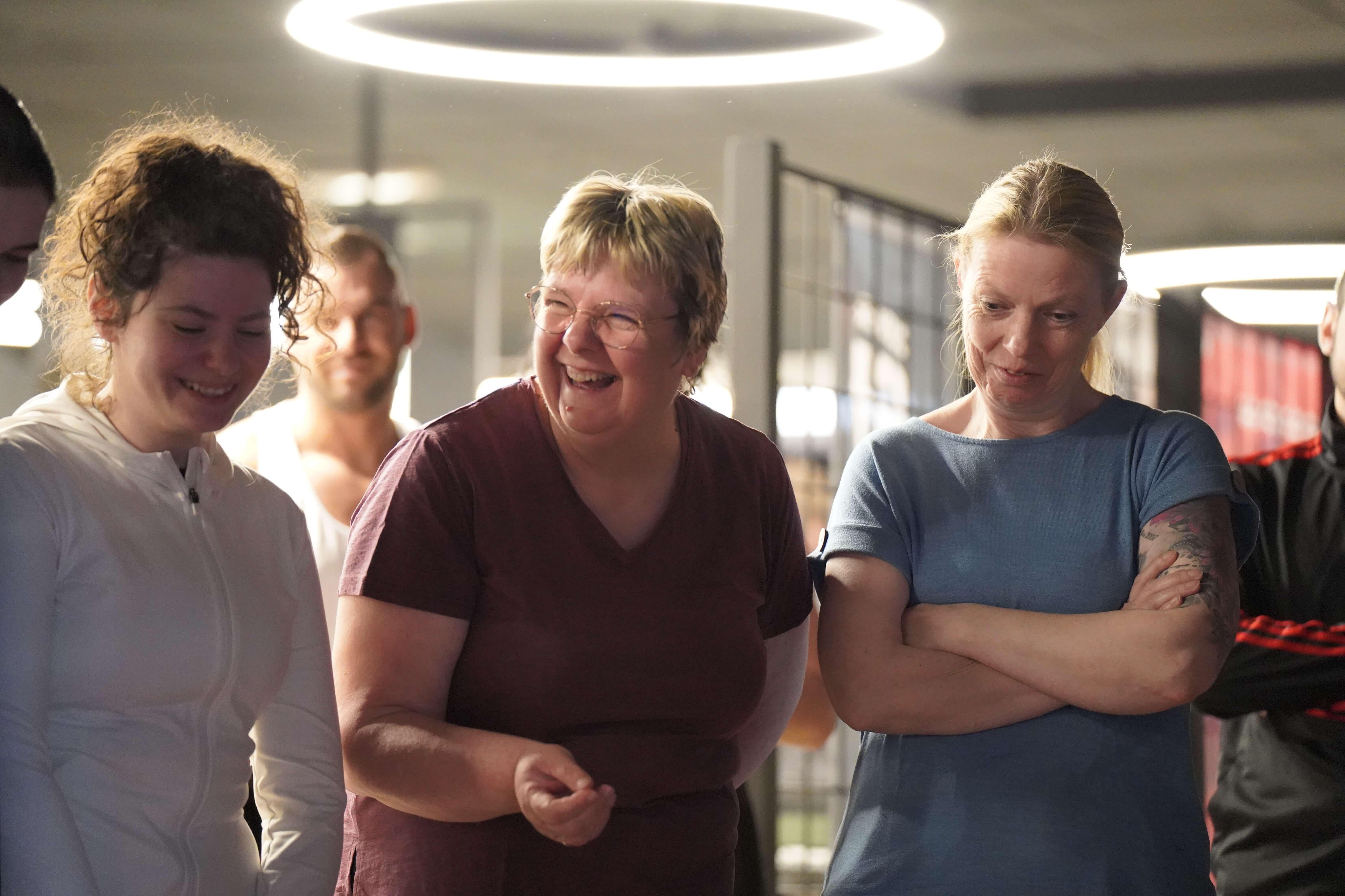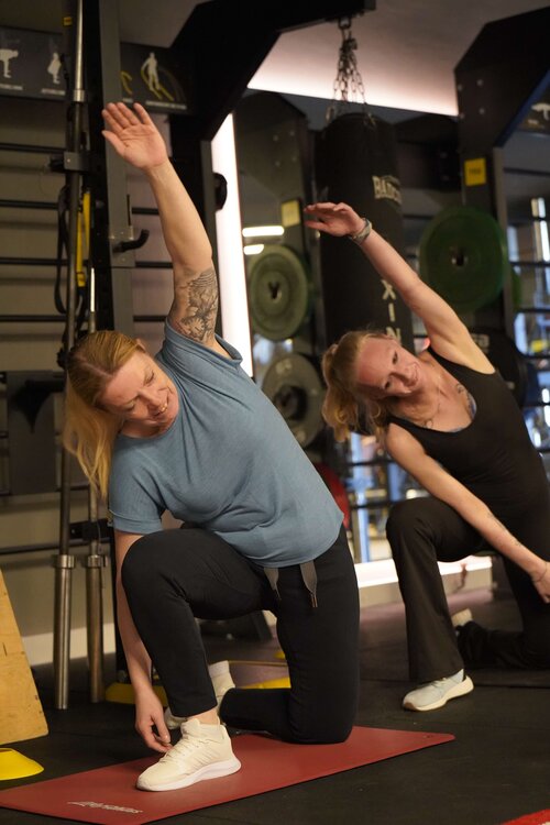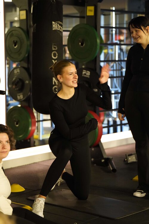 Die Zentralen Praxisanleiter Kathrin und Christoph nehmen die Auszubildenden vor der Tür des Fitnessstudios in Empfang. So richtig nach Move sieht hier draußen noch nichts aus. Doch dann öffnet sich die Tür. Eine lange Treppe führt nach oben und plötzlich wird ein wenig Aufregung, ein wenig Vorfreude, vielleicht auch ein wenig Unsicherheit spürbar, als die Gruppe die Schritte hinauf ins Studio geht. Trotz der frühen Uhrzeit sind bereits einige Sportler zum Trainieren da. Neugierige Blicke. Viele Fragezeichen. Was erwartet mich? Doch die Organisatoren holen die Auszubildenden mit einem kurzen Briefing ab. Ganz entspannt auf Augenhöhe und du und du. Dann geht es auch schon los.