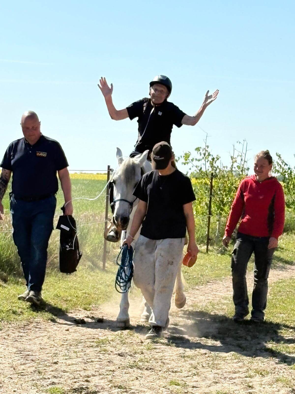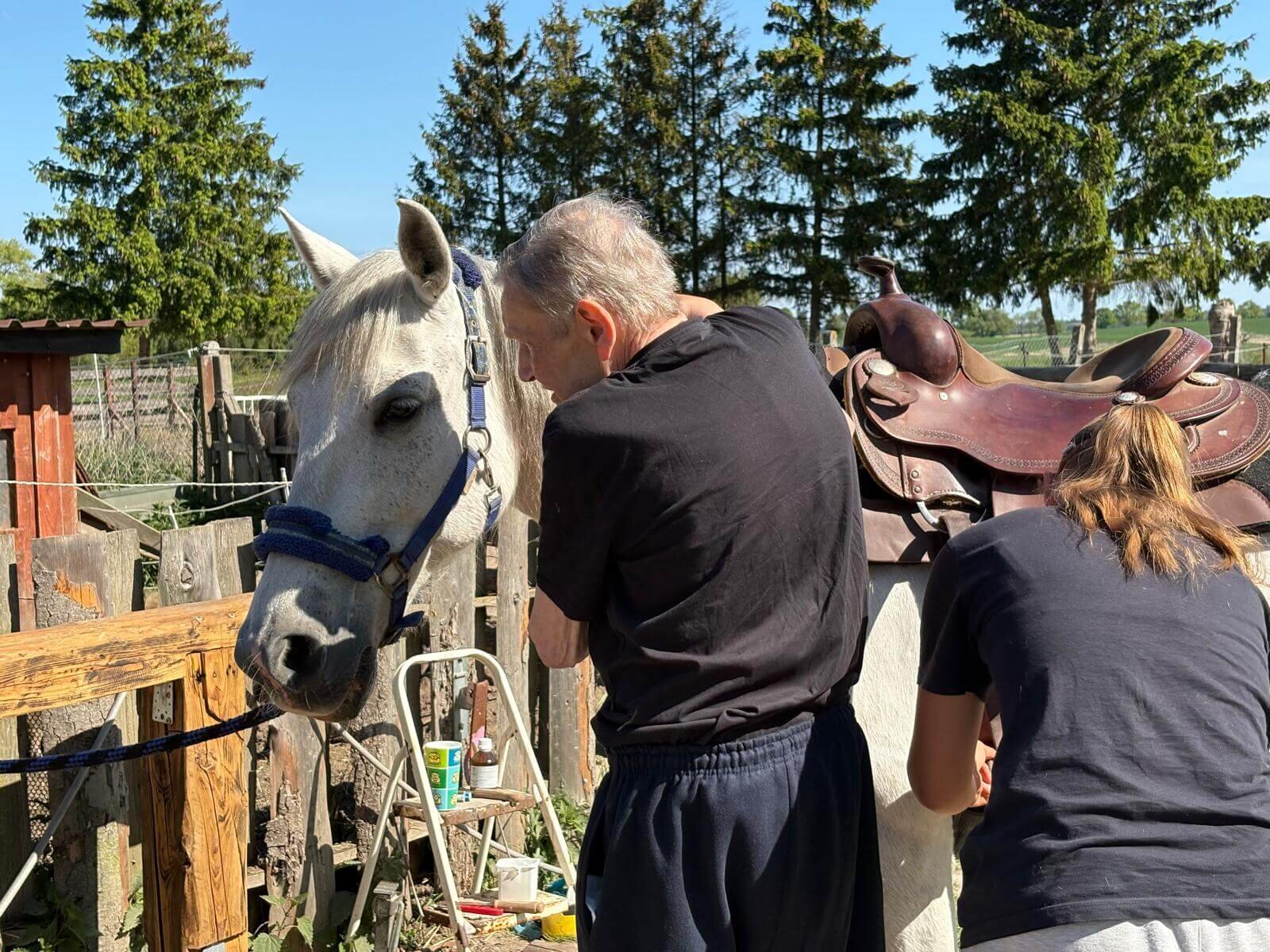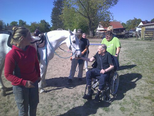 Palliativschwester Laura aus dem Nikolaiheim ist insbesondere in solchen Situationen für die Bewohner*innen da. In Gesprächen mit Herrn Klaut fand sie heraus, dass er gerne noch einmal reiten gehen würde. So wie damals mit seinem Bruder in der Mongolei. Zusammen mit dem Projekt Wünschewagen des ASBs organisierte sie für Herrn Klaut einen Ausflug zu einem Gestüt in der näheren Umgebung. Herr Klaut war zu diesem Zeitpunkt sehr geschwächt und es strengte ihn merklich an. Aber dieser Moment, als er auf dem Pferd saß, löste etwas in ihm aus. Die Erinnerung daran bewegt ihn noch heute zu Tränen. Es fällt ihm schwer, dies in Worte zu fassen; er kann es nur so beschreiben, „dass plötzlich etwas weg war“ – die visuellen Erscheinungen, wie auch das Gefühl bald zu sterben.