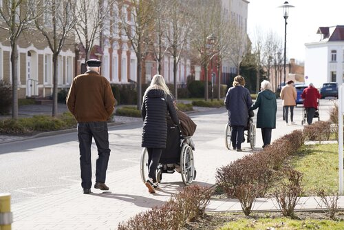 Die gemeinsamen Spaziergänge tragen dazu bei, die laufenden Gäste weiter zu mobilisieren. Aber auch für die Rollstuhlfahrer ist die Zeit draußen an der frischen Luft eine willkommene Abwechslung, um z.B. neue Eindrücke aus der näheren Umgebung zu sammeln. Das gemeinsame Erlebnis bietet darüber hinaus wieder Gesprächsstoff über die gesammelten Eindrücke.