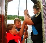 Kinder und Jugendliche aus Einrichtungen der NBS erkunden das Usedomer Achterwasser mit einem alten Frachtsegler und bei richtigem Seewetter.