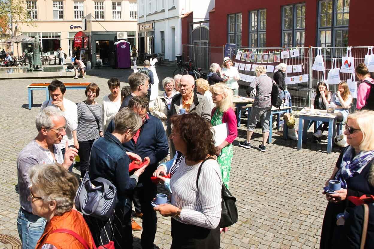 Zum Auftakt der Aktion am 14.05. besuchte Bundesfamilienministerin Lisa Paus das Mehrgenerationenhaus Bürgerhafen in Greifswald. Die Ministerin informierte sich über die Arbeit des Bürgerhafen und nahm an einer Podiumsdiskussion im Café und Restaurant Lichtblick teil. Vertreter:innen aus der Wissenschaft, dem Studierendenwerk Greifswald, dem Bürgerhafen und dem Café für Alleinstehende diskutierten mit der Ministerin zum Thema Einsamkeit. Anschließend eröffnete Frau Paus die Aktionstage auf dem Greifswalder Fischmarkt mit dem Anschneiden einer Torte. Besucher:innen hatten die Möglichkeit, sich über Angebote des Bürgerhafen zu informieren, mit Studierenden der Universität ins Gespräch zu kommen oder gemeinsam Boule zu spielen. Als besonderes Highlight konnten Interessierte die Fahrradrikscha des Bürgerhafens ausprobieren, mit der mobilitätseingeschränkte Menschen von ehrenamtlichen „Piloten“ durch die Stadt gefahren werden können.