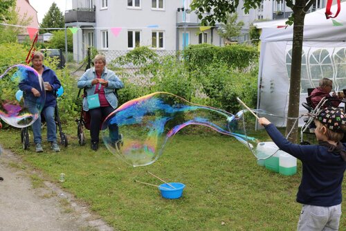 Auch die Bewohner*innen des Pflegeheims gesellten sich an diesem familienfreundlichen Nachmittag gern dazu und freuten sich über das rege Treiben und die vielen fröhlichen Kinder.