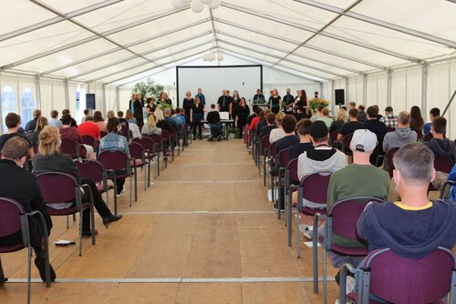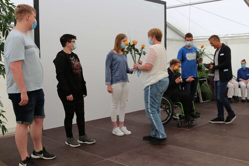 Vom Tischler und IT-Systemelektroniker über die Fachkräfte für Bürokommunikation, bis zum Fachlageristen – mehr als 50 junge Menschen beenden in diesem Jahr ihre Ausbildung im BerufsBildungsWerk Greifswald. Anders als erwartet, konnten die Teilnehmer*innen diesmal in feierlicher Atmosphäre verabschiedet werden. Die Jugendlichen haben es geschafft und sind nun ausgebildete Fachkräfte für den Arbeitsmarkt. Auch mehr als 70 Teilnehmer*innen der Berufsvorbereitenden Maßnahme erhielten das Zeugnis ihrer erfolgreich absolvierten Bildungsmaßnahme. Dies Maßnahme war die erste ihrer Art, die mitten in einer Pandemie begann und hauptsächlich durch Fernbetreuung geprägt war.