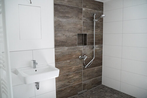 Doch auch drinnen kann man sich wohlfühlen: Die 2- und 3-Zimmer-Wohnungen, die zwischen 71 und 82qm groß sind, verfügen über komfortable Tageslichtbadezimmer mit ebenerdigen Duschen und haben von allen Fenstern einen Blick ins Grüne. Die Wohnungen im 1. und 2. OG sind bequem über einen Aufzug erreichbar und Autostellplätze finden sich direkt vor der Tür. Eine der Wohnungen im Erdgeschoss ist zudem behindertengerecht ausgestattet.