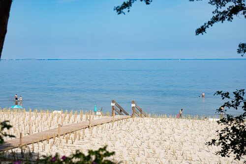 Von der Haustür sind es nur ein paar Schritte, vorbei an einem kleinen Imbiss, auf die Strandpromenade und den Strandabgang hinunter in den Lubminer Sand und ins kühle Nass. Wenn man einmal nicht im Ostseewasser baden möchte, lässt es sich aber auch prima auf der eigenen Terrasse oder dem Balkon aushalten, die zu allen Wohnungen gehören. Von hier eröffnet sich ein toller Blick auf Bäume, Promenade, Strand und Wasser – gerade bei gutem Wetter lassen sich der Greifswalder Bodden und Rügens Ostküste wunderbar sehen.