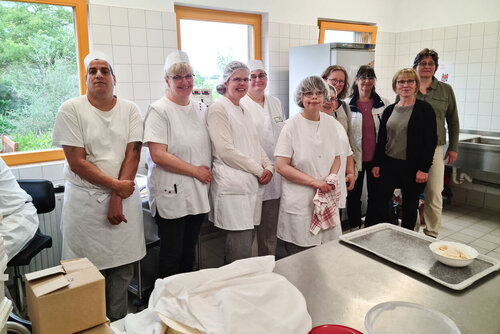 Im Fachaustausch erläuterten unsere Mitarbeiterinnen die Besonderheiten und Herausforderungen in unseren Produktionsabläufen und beantworteten bereitwillig und professionell Fragen zum gesamten Arbeitsumfeld des Arbeitsbereiches Hauswirtschaft.