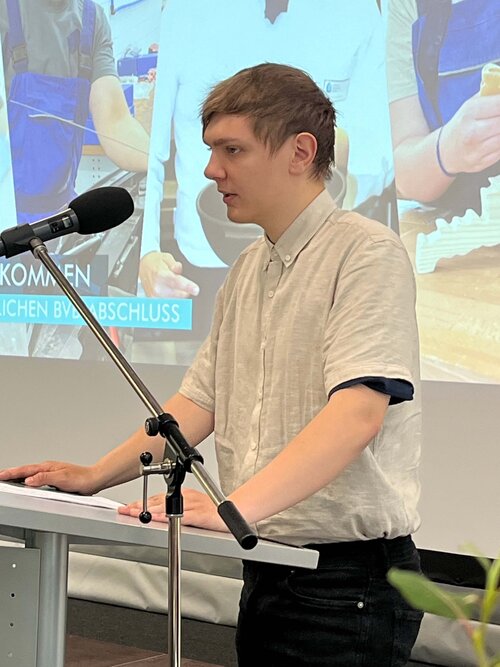 „Sie durften und mussten ihre eigenen Erfahrungen mit all dem machen – und haben eine Menge über sich gelernt. Ihr erworbenes Wissen ist wertvoll, nachhaltig und es bleibt bei Ihnen, auch wenn sich Lebenswege verändern. Sie werden weiter Ihre Erfahrungen machen – das Lernen bleibt lebenslang“, so Fachbereichsleiter René Förster. „Ihnen allen möchte ich die Botschaft mitgeben: Bewahren Sie sich Neugier und Offenheit für neues Wissen und neue Erfahrungen. Probieren Sie Neues aus – und denken Sie daran, dass es okay ist, wenn nicht alles sofort perfekt läuft“.