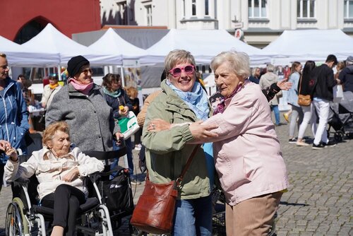Highlight der Veranstaltung war die diesjährige Stadtwette. Wir haben gewettet, dass wir es schaffen 101 Personen (von 0 bis 100+ Jahre) vor unsere Bühne auf den Greifswalder Markt zu locken und mit uns gemeinsam zu Uptown Funk zu tanzen. Eine Choreographie wurde im Vorfeld mit der Tanzschule D&D erarbeitet und konnte auch noch am Markttag am Stand des Dienstes zur betrieblichen Inklusion geübt werden. DJ Thomas Wodrig motivierte viele Unentschlossenen im Verlauf des Tages nocheinmal an der Stadtwette teilzunehmen, so dass die Unternehmensgruppe Pommersche Diakonie um 16 Uhr sagen konnte: Tanzend, verbindend Energie erzeugt - Wette geschafft!