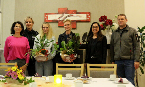 v.l.n.r.: Bärbel Jager (ehemalige Ausbilderin), Grit Kindermann (Erzieherin), Lindy Ave (Leistungssportlerin), Heike Kemmler-Westphal (Trainerin), Stefanie Niemeyer (Bereichsgeschäftsführung), Marcus Riechert (Fachbereichsleitung Wohnen & Freizeit)