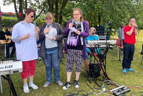 Hallo und herzlich willkommen hieß es zur Sommerandacht am Helmshäger Berg für Leistungsberechtigte und Fachkräfte der Greifenwerkstatt! Thema der Andacht war die Freundschaft – und gleich zu Beginn der Andacht gab es eine ganz besondere Frage für das anwesende Publikum.