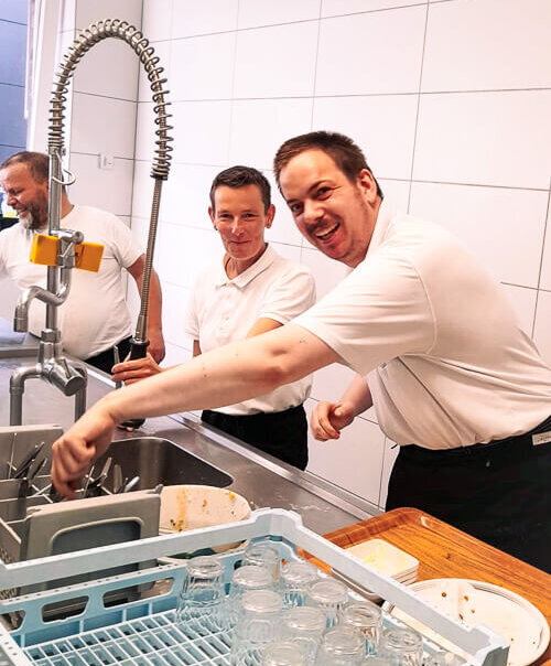Ebenfalls am Aktionstag wechselte Peggy Voss, Fachleitung Freiwilligendienste vom Diakonischen Werk M-V zur ausgelagerten Arbeitsgruppe in die Abwäsche der Küche der Züssower Service und Catering und half kräftig mit. Sie meldet zurück: „Ein ganz tolles Team, mit toller Begleitung. Ich habe mich gleich wohl gefühlt, wurde gut unterwiesen. Ein wertvoller Einblick, eine wertvolle Erfahrung!“