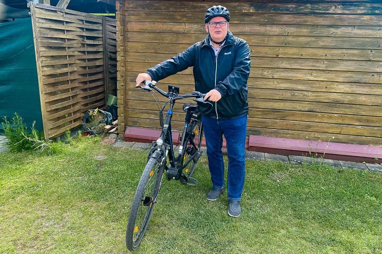„Eigentlich wollte ich noch weiter fahren,“, sagt Michael Weidner, „aber leider ist am Himmelfahrts-Wochenende der Motor kaputt gegangen.“ Weidner fährt E-Bike – das ist beim Stadtradeln nicht nur erlaubt, sondern völlig in Ordnung. Für Weidner ist das Radfahren schließlich nicht nur ein Hobby. „Ich wohne in Neuenkirchen und habe kein Auto. Ich habe es 2019 verkauft und mache seitdem alles ausschließlich mit dem Rad.“ Seine Kolleg:innen am Standort der Wirtschaftsakademie Nord in Greifswald hätten sich schon oft gewundert, wenn er auch im Winter bei Wind und Wetter seine vielen Außentermine wahrnimmt. „Das geht alles. Der Spruch stimmt schon: Es gibt kein schlechtes Wetter, nur schlechte Kleidung.“