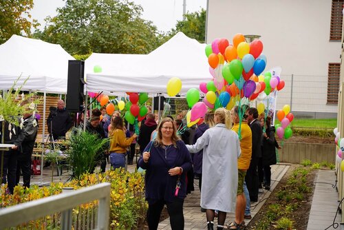 Und auch die Kinder und Jugendlichen, sowie Mitarbeiter*innen aus dem Fährhaus und dem Lotsenboot, hießen die neuen Nachbarn mit einstudierten Liedern, die musikalisch von Isabell Schmidt begleitet wurden, und bunten Luftballons herzlich willkommen.