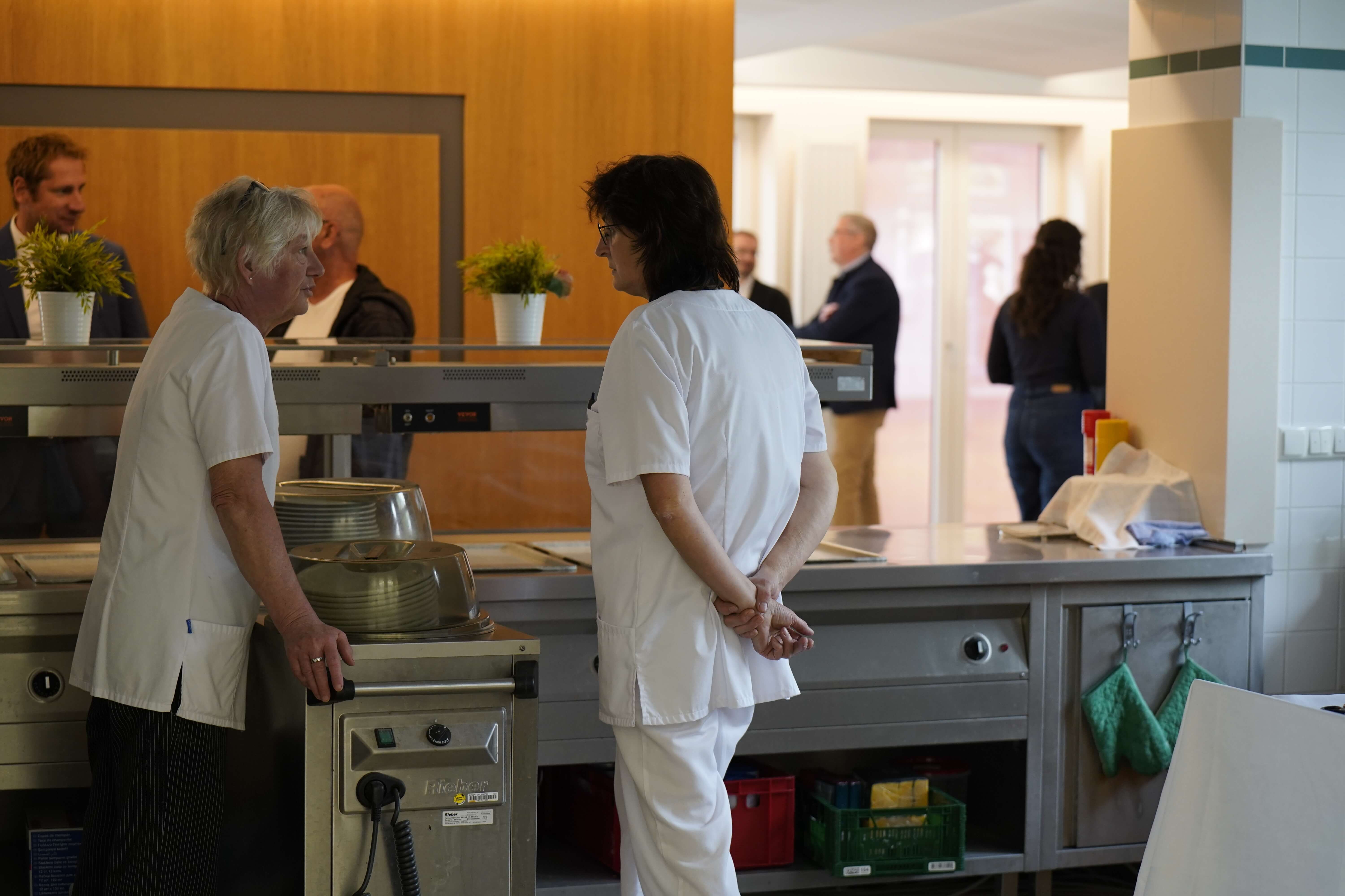 Davon überzeugen konnten sich die Gäste bei der gestrigen Inbetriebnahme. Klaus Werner und Fachbereichsleiter Heiko Ehrke erklärten die geplanten Produktionsverfahren Cook & Chill und Cook & Hold und wie die neue Technik dabei unterstützt, Speisen Nährstoff schonend und ressourcenorientiert zuzubereiten.