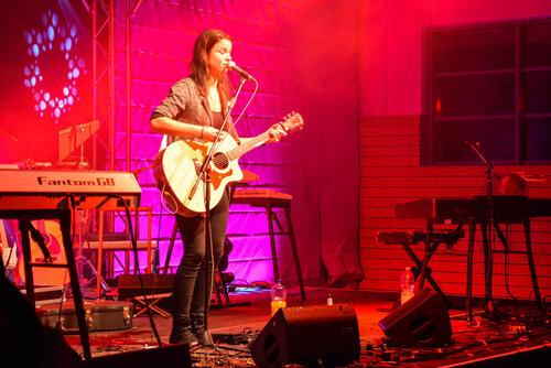 20:30. Auf der Bühne steht nun eine Künstlerin ganz ohne Band. Ihr Motto ist "do it yourself", die Gitarre ihr Markenzeichen. Vom Text bis zur Veröffentlichung macht Isabell Schmidt alles selber. Von dem tosenden Applaus, der nach jedem ihrer Songs aufbrandet, zeigt sie sich überwältigt: "Obwohl ich schon viele Jahre Musik mache, bin ich oft doch ein bisschen nervös vor einem Auftritt. Aber wie ihr mich hier begrüßt, ist einfach umwerfend."