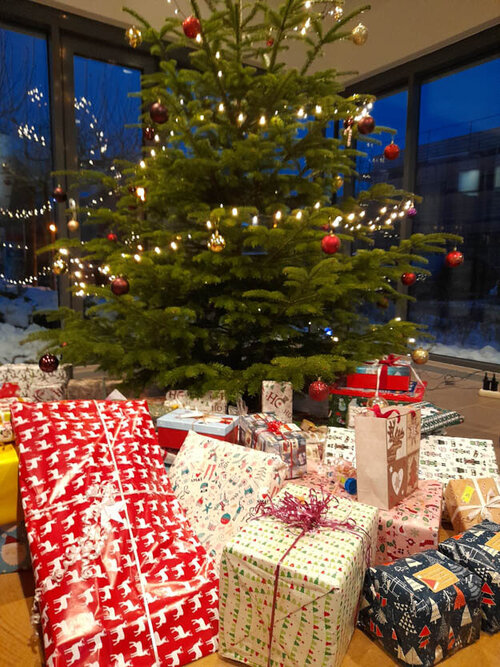 Dann war der große Tag da und alles wurde festlich geschmückt, der Tannenbaum mit all den bunten Geschenken darunter und die festlichen Tafeln.