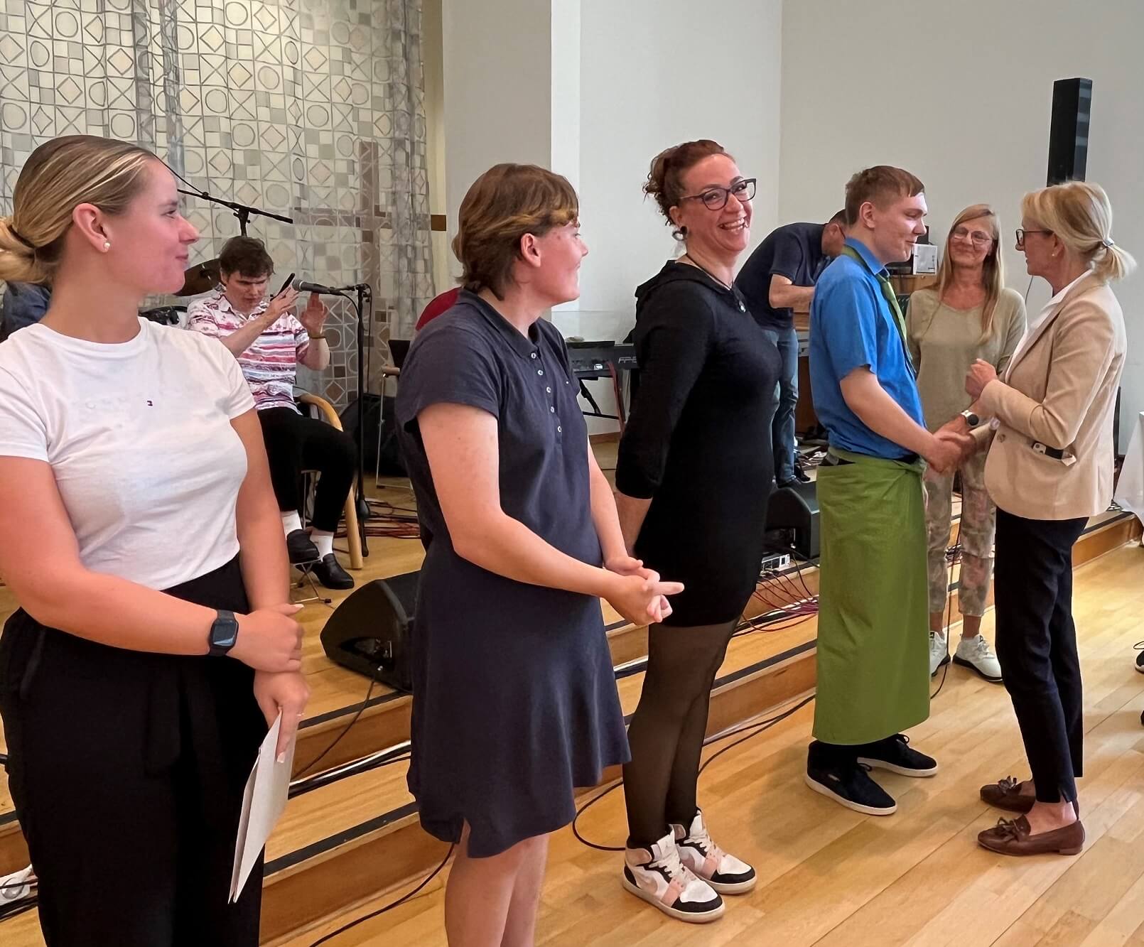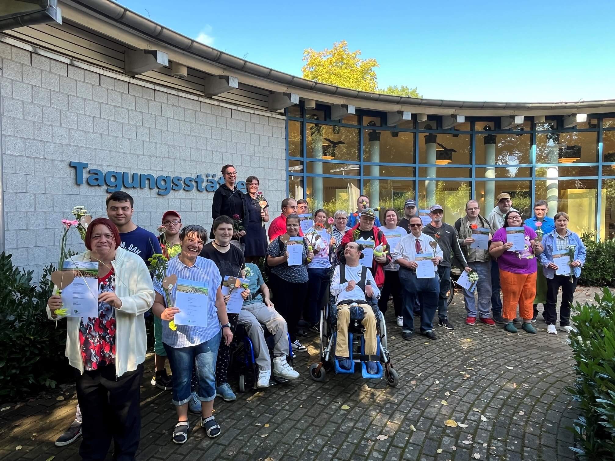 Manche sind erst seit kurzem dabei, andere schon seit Jahrzehnten. Gemeinsam wurde gefeiert, erinnert, gelacht und auch die ein oder andere Träne verdrückt. Die Fachbereichsleiterin, Frau Natschke, erzählte von den Anfängen vor zehn Jahren. Fachkräfte berichteten, was in dieser Zeit an Entwicklung möglich wurde. Aus anfänglicher Unsicherheit – „Wie wird das wohl werden?“ – ist mit der Zeit ein selbstbewusstes „Lassen Sie uns mal machen, das passt schon!“ geworden. Geschichten wie die von Herrn Wessler aus der Käserei zeigen eindrücklich, wie viel möglich ist, wenn man die richtige Unterstützung hat.