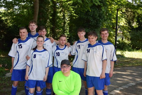 Elf mutige Mannschaften am Start und unser eigenes Team, die tapferen neun Kämpfer*innen aus dem BerufsBildungsWerk Greifswald sind natürlich auch dabei. Jeder gegen jeden – das bedeutet 66 spannende Spiele voller Dramatik, Torraumszenen und natürlich auch ein bisschen Schweiß. Die Sonne brennt, die Stimmung kocht – und die Bälle fliegen nur so durch die Luft!