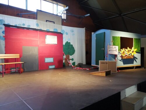 So haben wir uns also, gemeinsam mit einigen Bewohner*innen des Gertraudenstifts, auf den Weg gemacht und waren schon vom Bühnenbild echt überwältigt. Die Schüler*innen und Verantwortlichen der Schule hatten es liebevoll und bunt gestaltet, sodass man sofort in die Szenerie eintauchen konnte.