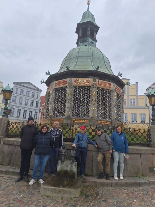 Die „Wasserkunst“, ein Renaissancegebäude aus dem 16. Jahrhundert, das der Trinkwasserversorgung der Stadt bis 1897 diente, gefällt uns mit ihrem schönen Kupferdach – ein guter Hintergrund für ein Foto zur Erinnerung an diesen Tag. Doch wir müssen weiter, Besuch in der Molkerei Rücker. Wir werden erwartet. Die Ostsee-Molkerei Rücker ist ein Familienbetrieb, der schon seit 130 Jahren Milch zu Käse verarbeitet. Milch von Kühen, die nicht weiter als 80 km entfernt an den Küsten Mecklenburg-Vorpommerns grasen. Eine Garantie für frische Produkte.