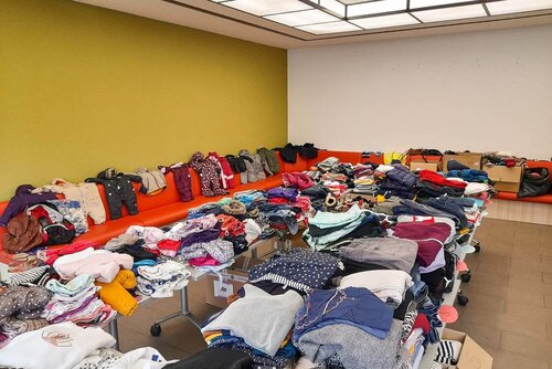 Am 19.10.2022 war es denn soweit: Bei unserem großen Kleiderbasar hatten Geflüchtete aus der Ukraine die Möglichkeit, sich Kleidung und diverse Haushaltsgegenstände kostenfrei mitzunehmen. Das Angebot wurde sehr gut angenommen. Viele waren der Ankündigung gefolgt und schon bald war der Spendenberg deutlich kleiner geworden. Es war ein toller Tag, voll schöner Begegnungen und unendlicher Dankbarkeit auf Seiten der Nehmenden. In den folgenden Tagen erhalten noch einige Familien und Einrichtungen die Möglichkeit, sich Benötigtes aus den Spenden auszuwählen.