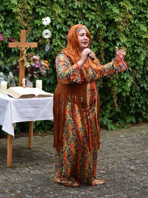 Nachdem die Einrichtungsleitung Birgitt Küthe mit einigen Begrüßungsworten den bunten Nachmittag auf dem Innenhof der Pflegeeinrichtung eröffnet hatte, nahmen alle Gäste an der Andacht von Pastorin Uta Voll teil. Im Anschluss hielt der kaufmännische Vorstand, Steffen Jaeckel, eine Ansprache und griff dabei das Thema der Veranstaltung auf: die Mode der vergangenen Jahrzehnte, von 1930 bis heute.