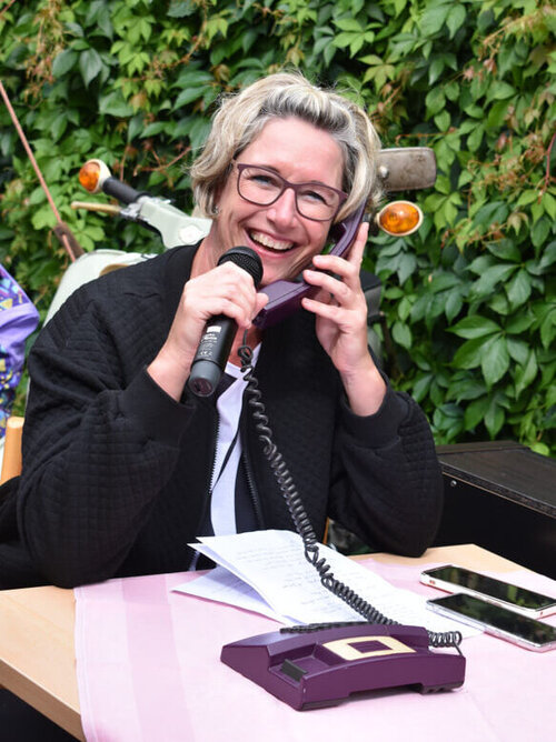 Aber auch zwei Stargäste(double) waren geladen: so erlebten die Teilnehmenden musikalische Auftritte von Helga Hahnemann („Jetzt kommt sein Süßer“), Keimzeit („Kling Klang“) und Johanna von Koczian („Das bisschen Haushalt“). Hierbei wurde kräftig mitgesungen, geschunkelt und geklatscht.