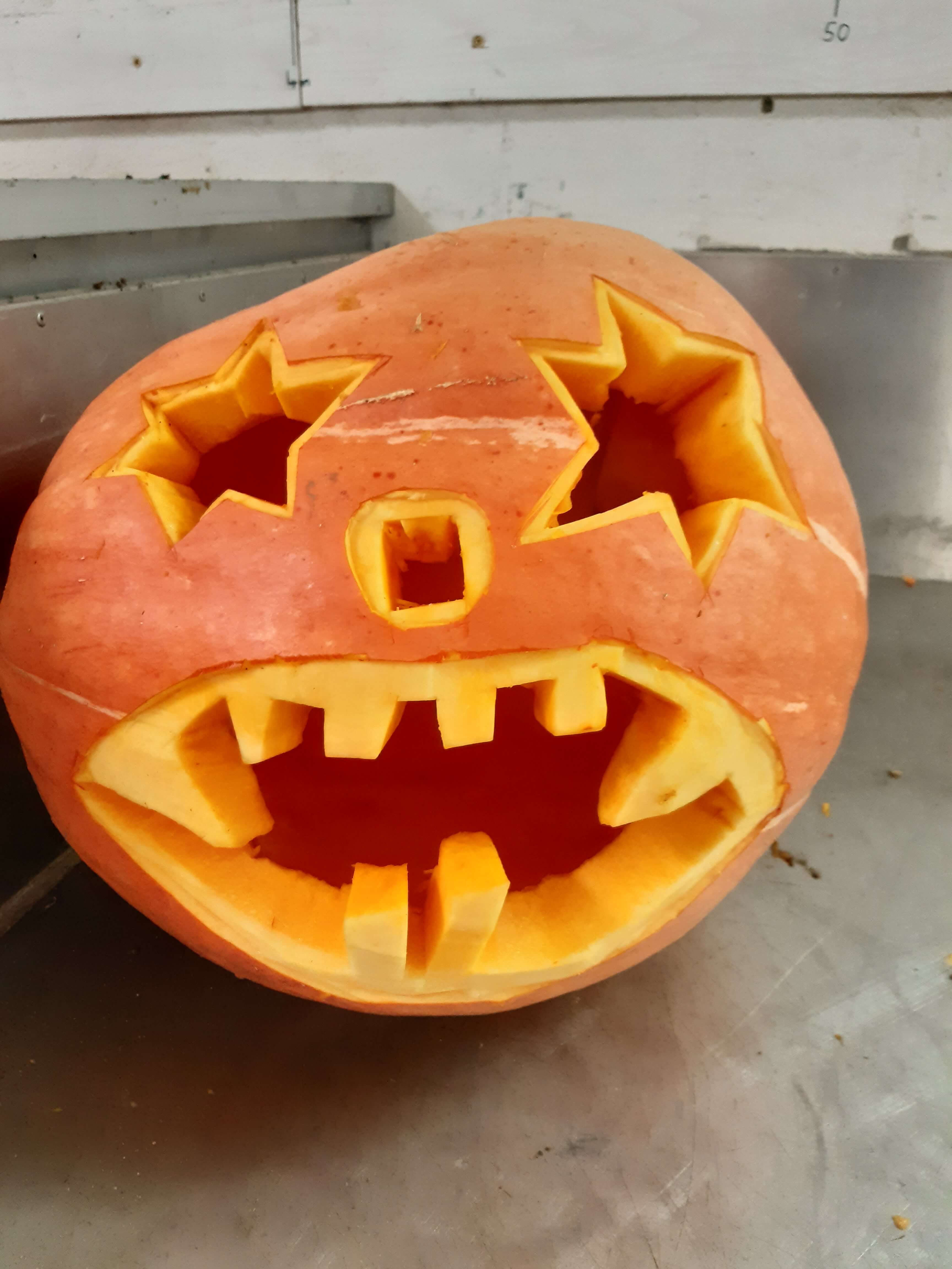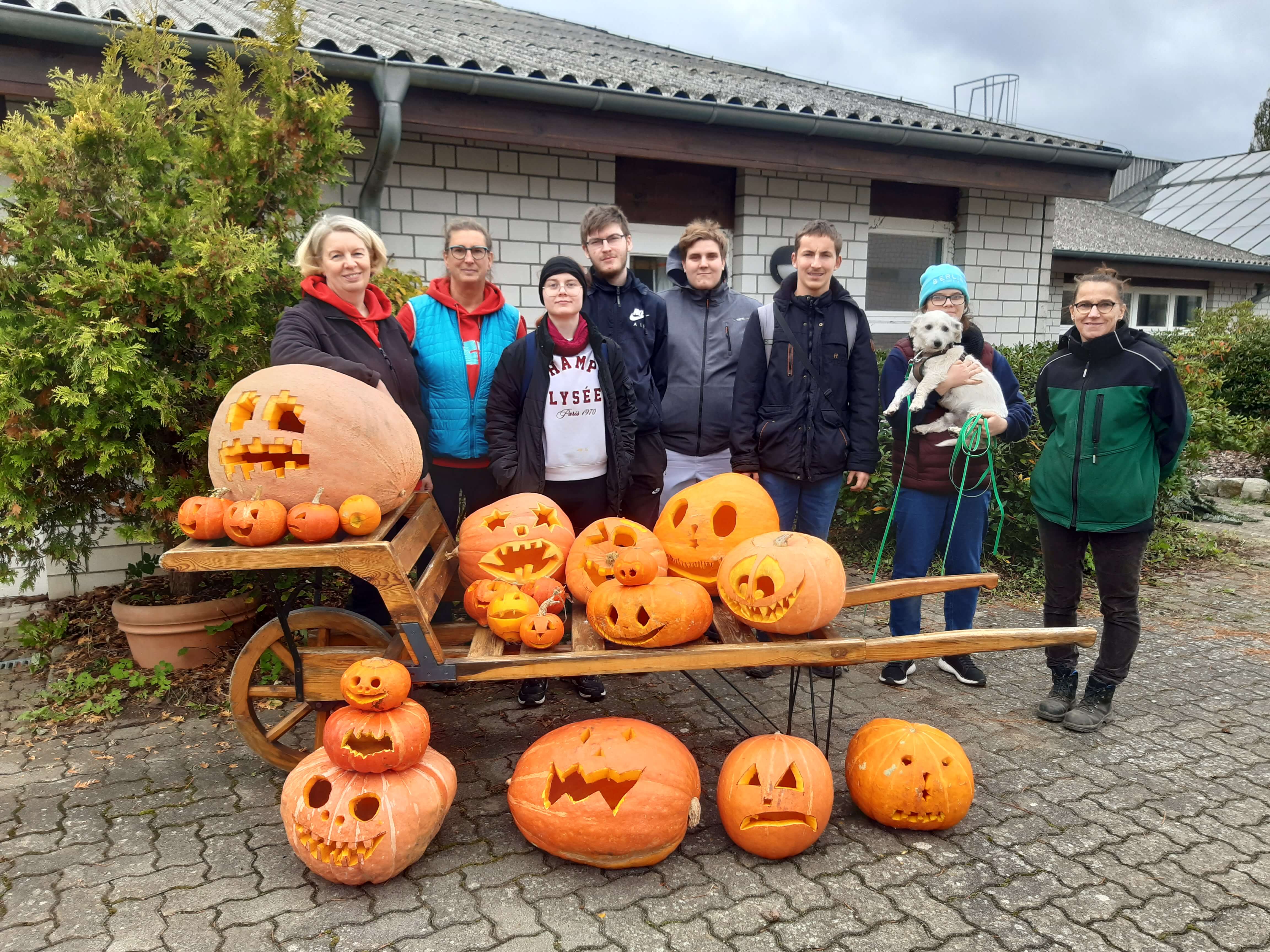 Hier wurde dann auch nicht gebacken oder gekocht, sondern geschnitzt. Ausgehöhlte Kürbisse, viel Fantasie und eine Prise Teamgeist sorgten für das perfekte Halloween-Feeling! Von gruseligen bis lustigen Kürbissen war alles dabei.