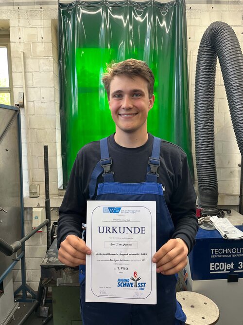 Herzlichen Glückwunsch an Tom Rochow – er ist Teilnehmer der Auftragsausbildung im BerufsBildungsWerk Greifswald und zugleich der alte und neue Landesmeister im Rahmen des Wettbewerbs „Jugend schweißt“. Der angehende Industriemechaniker des Entsorgungswerkes für Nuklearanlagen (EWN) konnte mit 98,2 Prozent im Autogenschweiß-Verfahren zudem ein sehr gutes Ergebnis erzielen. Tom Rochow hat sich damit auch für die Teilnahme am Bundeswettbewerb qualifiziert.