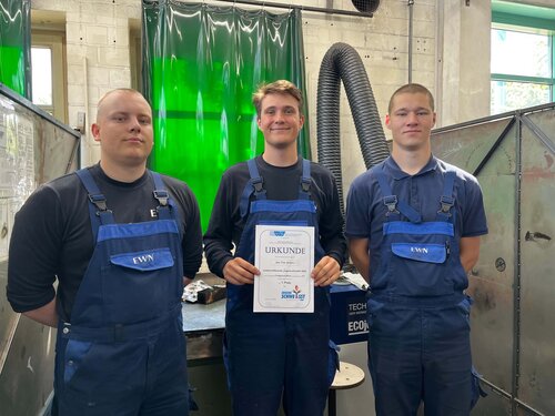 Nach dem Einschweißen hatten die Wettbewerbsteilnehmer zwei Stunden Zeit, ihre Aufgaben zu bearbeiten. Die jeweils drei Erstplatzierten durften sich bei der anschließenden Siegerehrung auch über attraktive Sachpreise freuen – vom Schweißgerät, über Werkzeuge bis hin zu hochwertiger Arbeitsschutzausstattung.