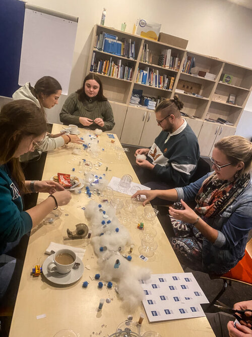 Nach einer Anfrage von Juliane Lexow, der Hauskoordinatorin des Kinderhauses "Labyrinth" vom Kinderschutzbund Greifswald, fanden sich spontan unsere Dualen Student:innen des 1. Semesters zusammen, um Weihnachtsdekoration für den Baum in Schönwalde II zu basteln.